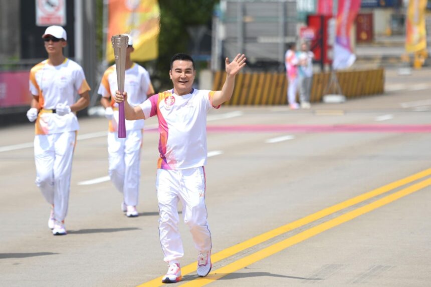 In September 2023, torchbearer Mao Geping ran during the 19th Asian Games torch relay in Ningbo City, Zhejiang Province.