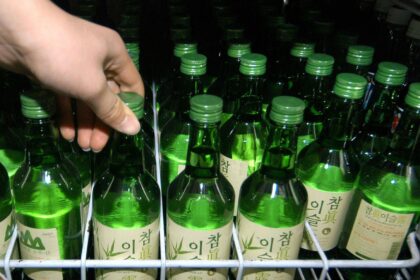 Buyers hold Gino containers at a corner store in Seoul, which is one of the most preferred liquor in South…